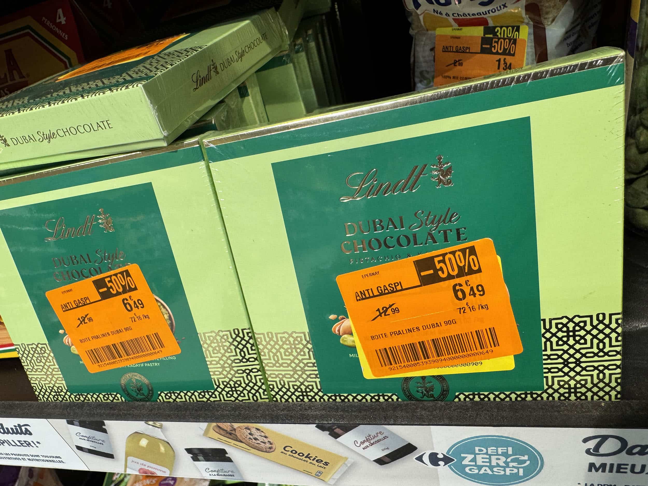 Pistache toujours. Même en anti-gaspi, le Dubaï Style s’affiche à 72 € le kilo. J’appelle mon banquier d’abord.