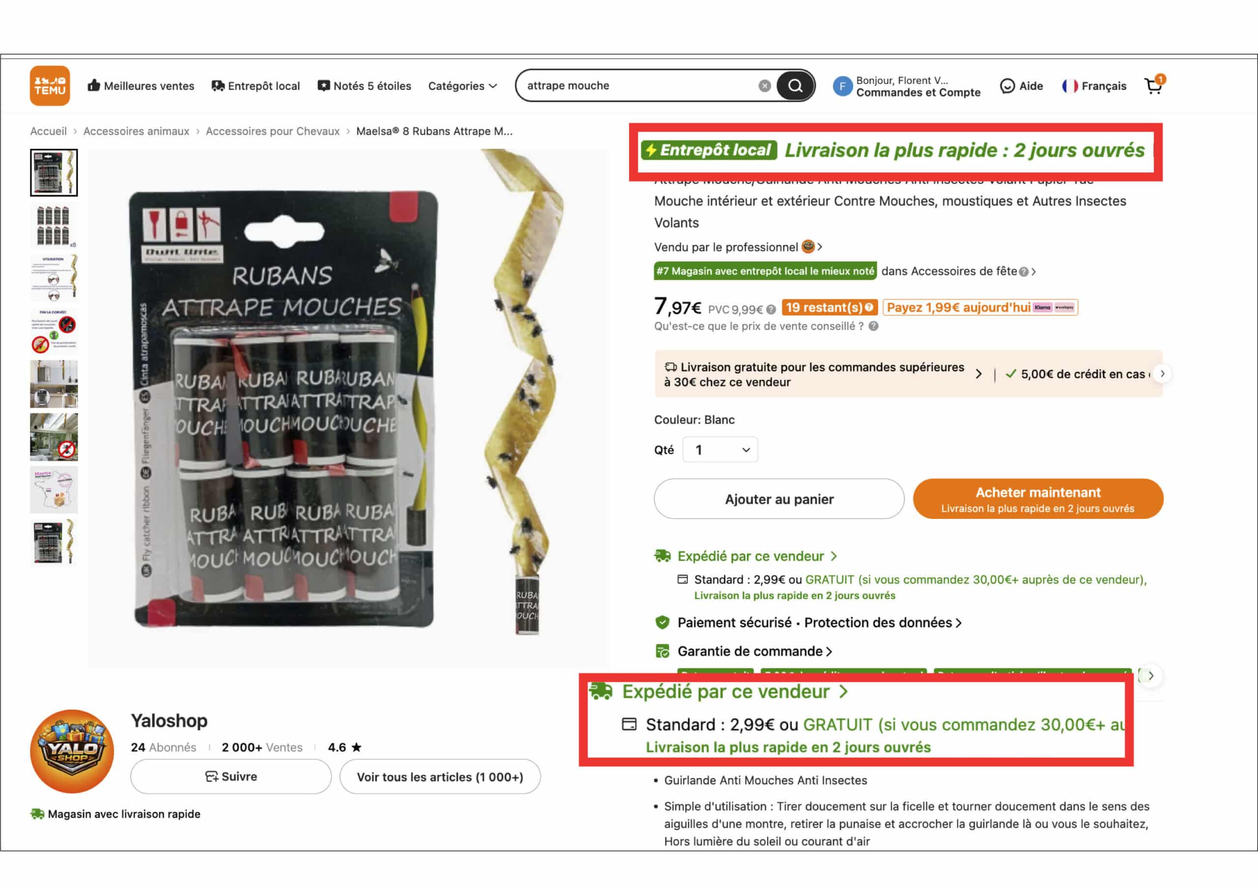 Le tarif proposé par ce Yaloshop n’a, sans surprise, aucun intérêt. Pour le même prix, on trouve sur Temu en « direct Chine » des paquets de 35 rouleaux (vs 8 pour ce vendeur français) ! Autant dire que les clients ne doivent pas se bousculer.