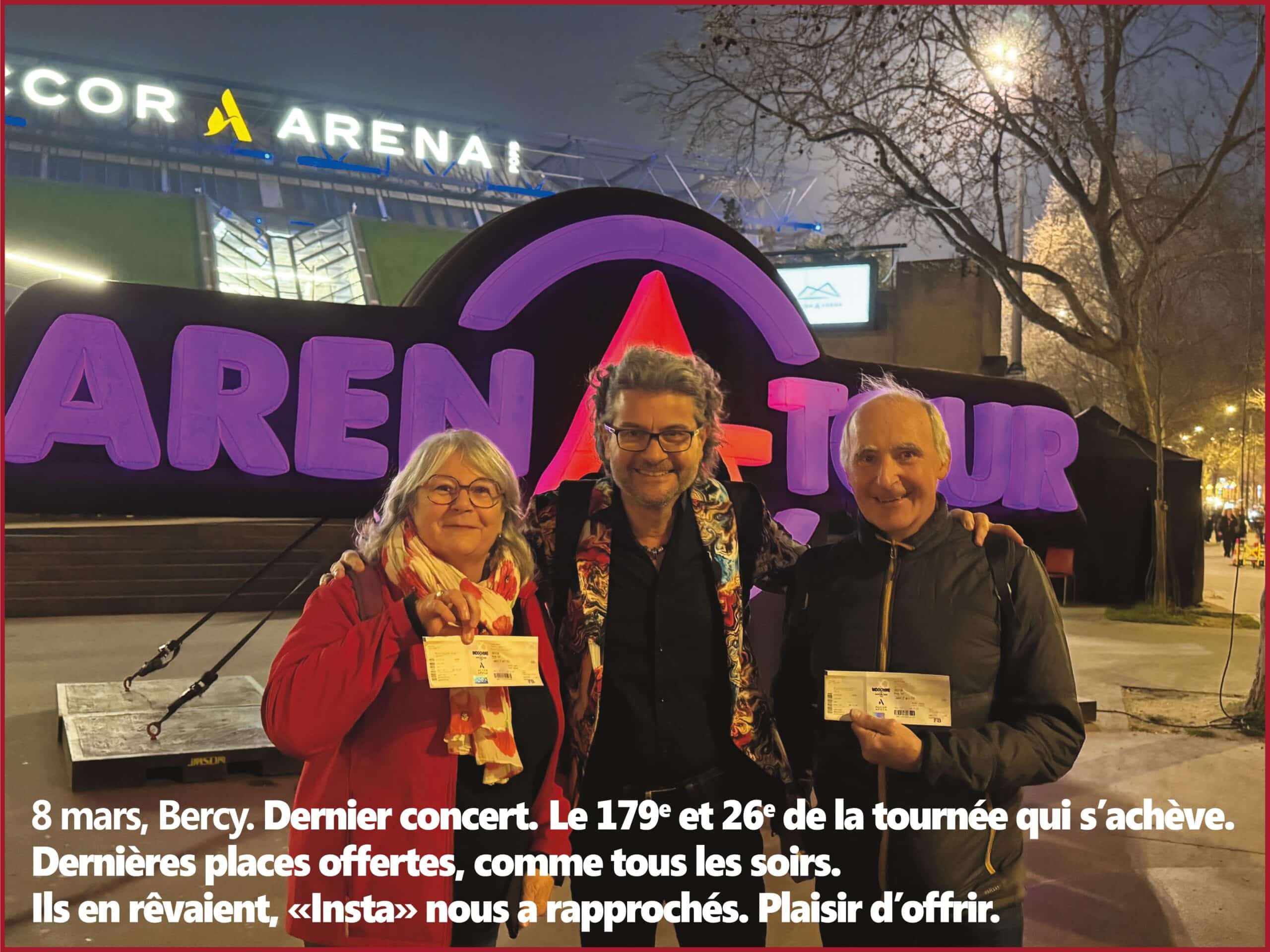 Très contente d’avoir fait votre connaissance dans le café en face de Bercy, lors de l’avant dernier concert, où vous avez continué de nous faire chanter ” le chant des cygnes” avec entrain.