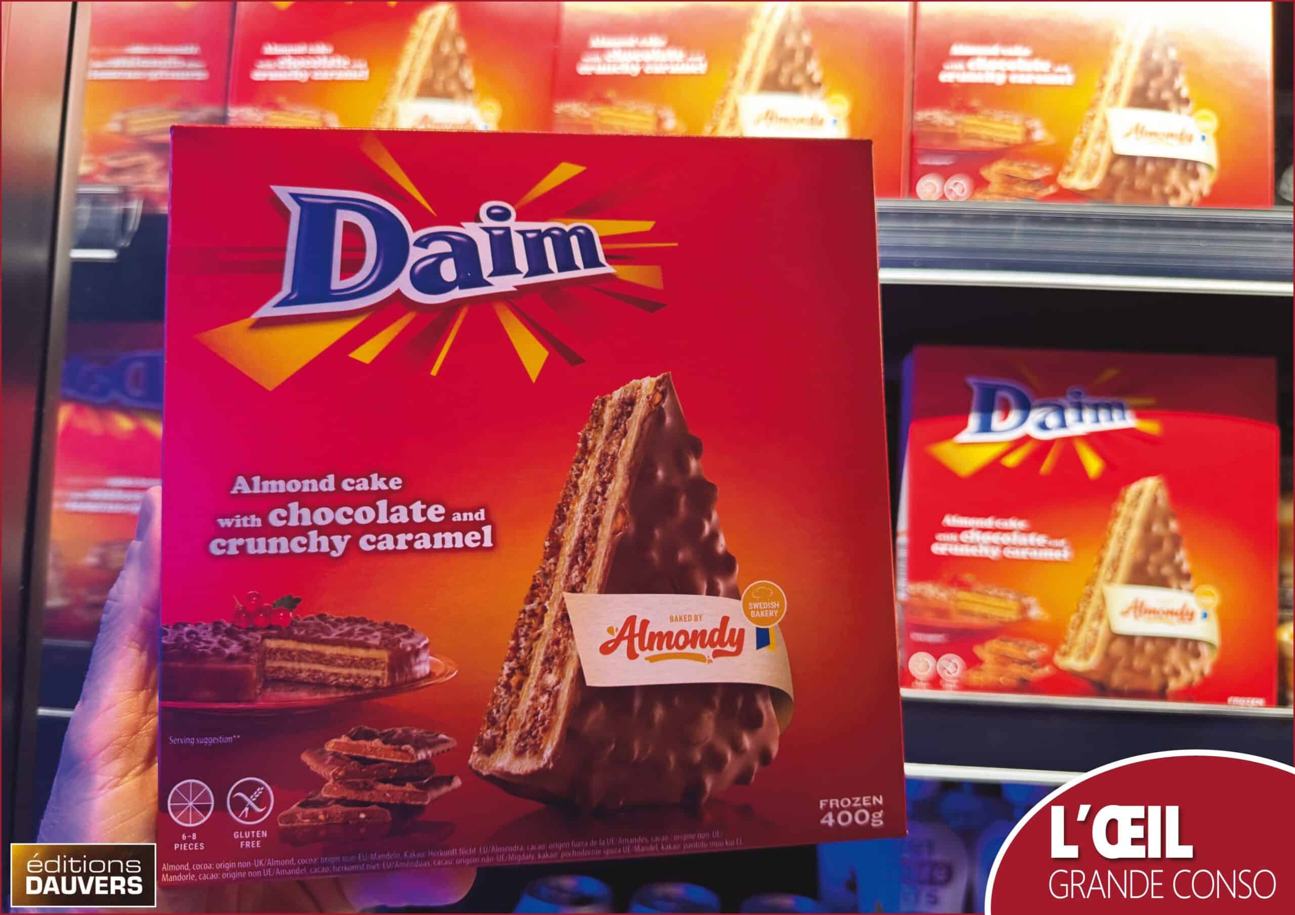 Dans la série “plaisir coupable”, je demande… Daim. Après la confiserie de chocolat, les glaces ou les entremets (liste non exhaustive), je demande le gâteau à partager, en version surgelé (Almondy). Présenté la semaine dernière sur le salon Intermarché Région parisienne, je me suis laissé tenter. Plaisir coupable, vous dis-je. Et je dois confesser avoir pris du plaisir ! Donc… j’ai goûté et j’ai validé.