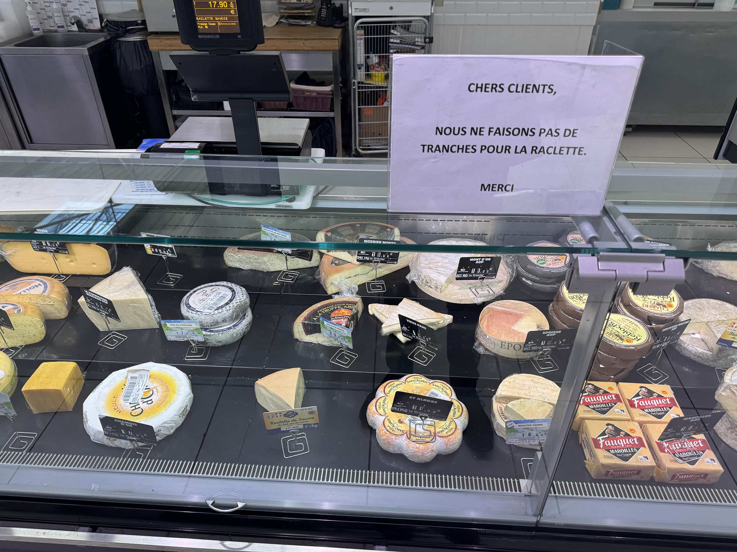 Stores-tour au Sud de Paris. Stop à Leclerc Massy (91). J’y suis rarement déçu sur le PENSER-CLIENT par l’absurde. « Nous ne faisons pas de tranches pour la raclette ». D’un autre côté, l’ambition sur le rayon se voit vite…