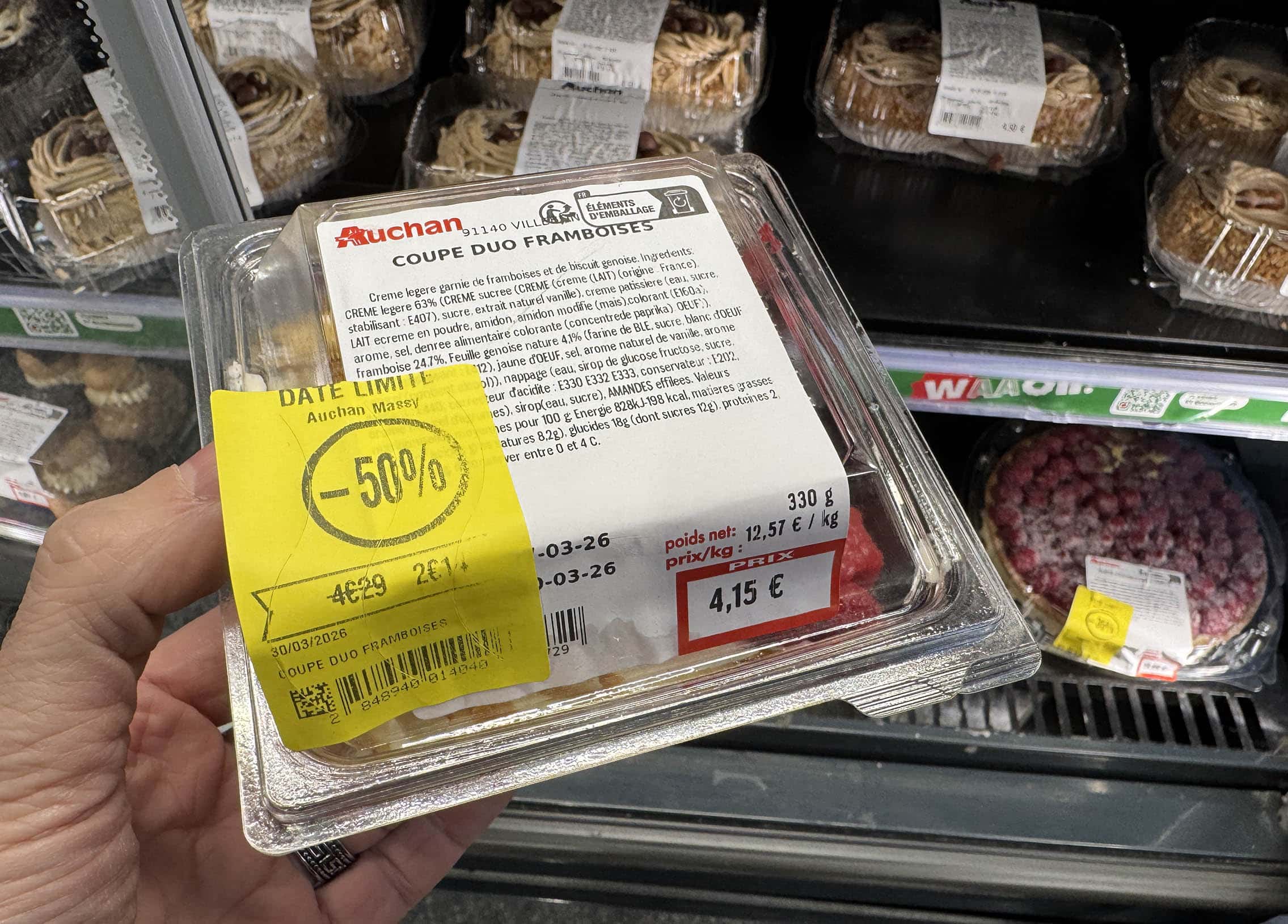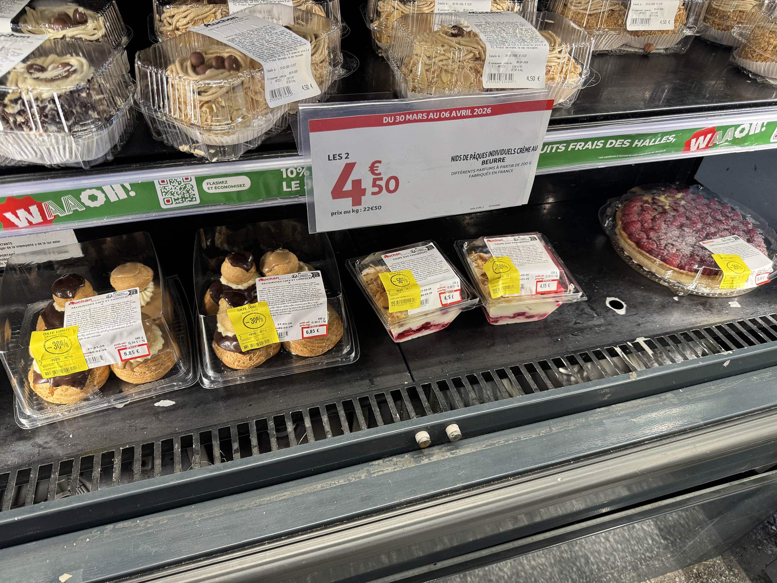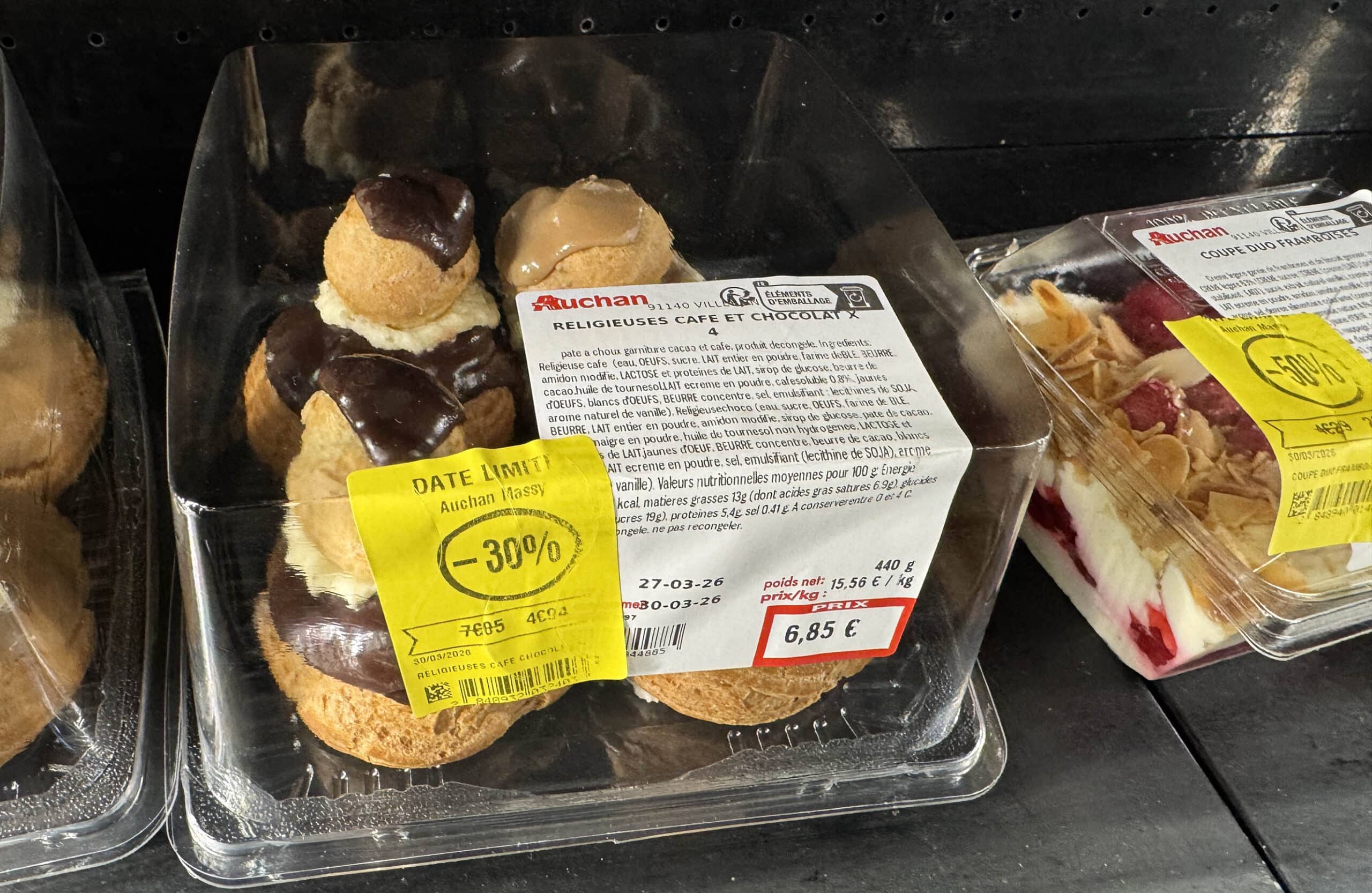 Auchan Super à Massy. Les prix « dates courtes » à la pâtisserie systématiquement majorés avant d’appliquer la remise de déstockage. Je n’ose croire à une stratégie. C’est pourtant ce que le client attentif en aura déduit. Et comme le client a toujours raison…