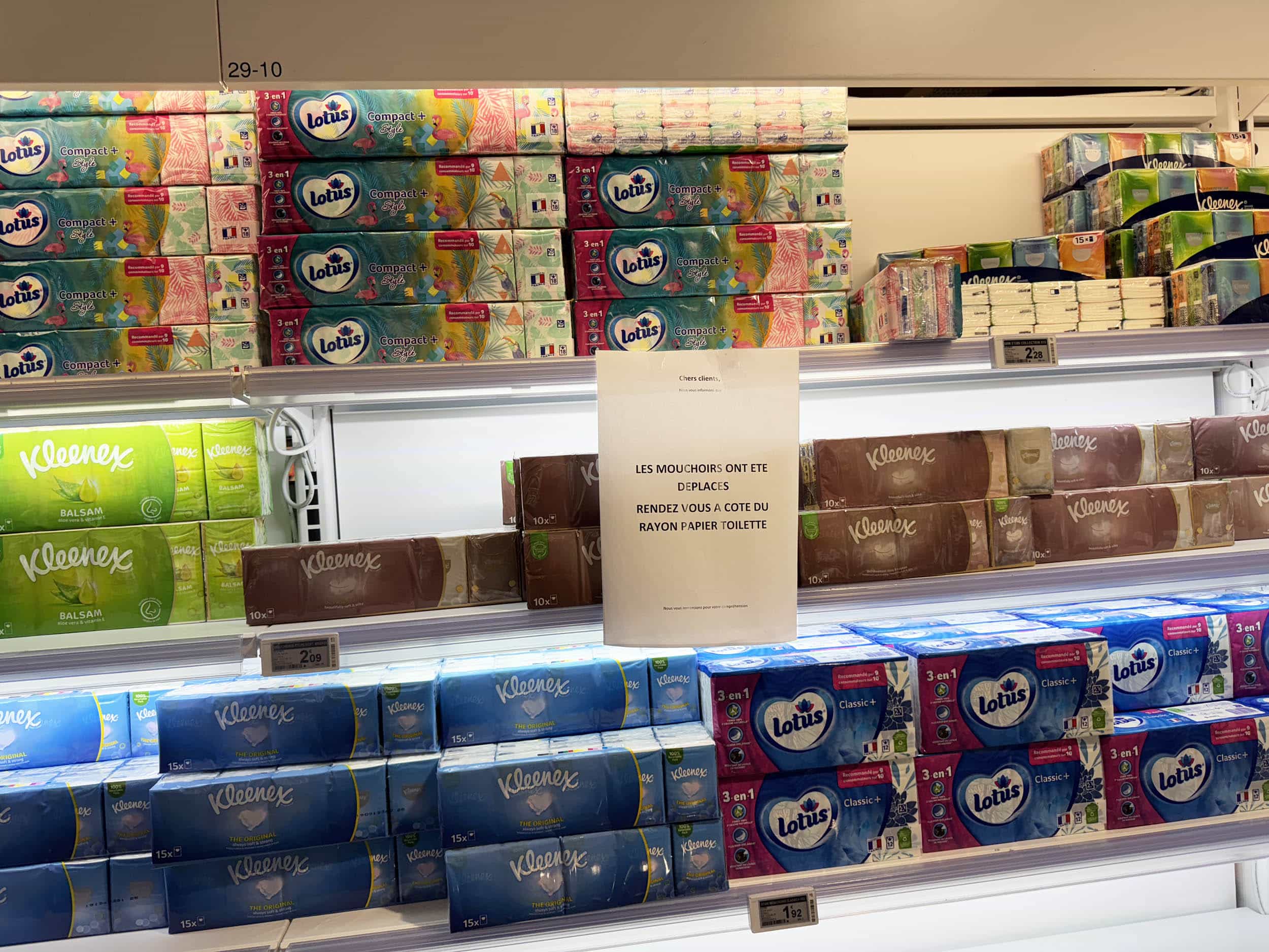 Intermarché Buc (78). « Les mouchoirs ont été déplacés ». Bah non.