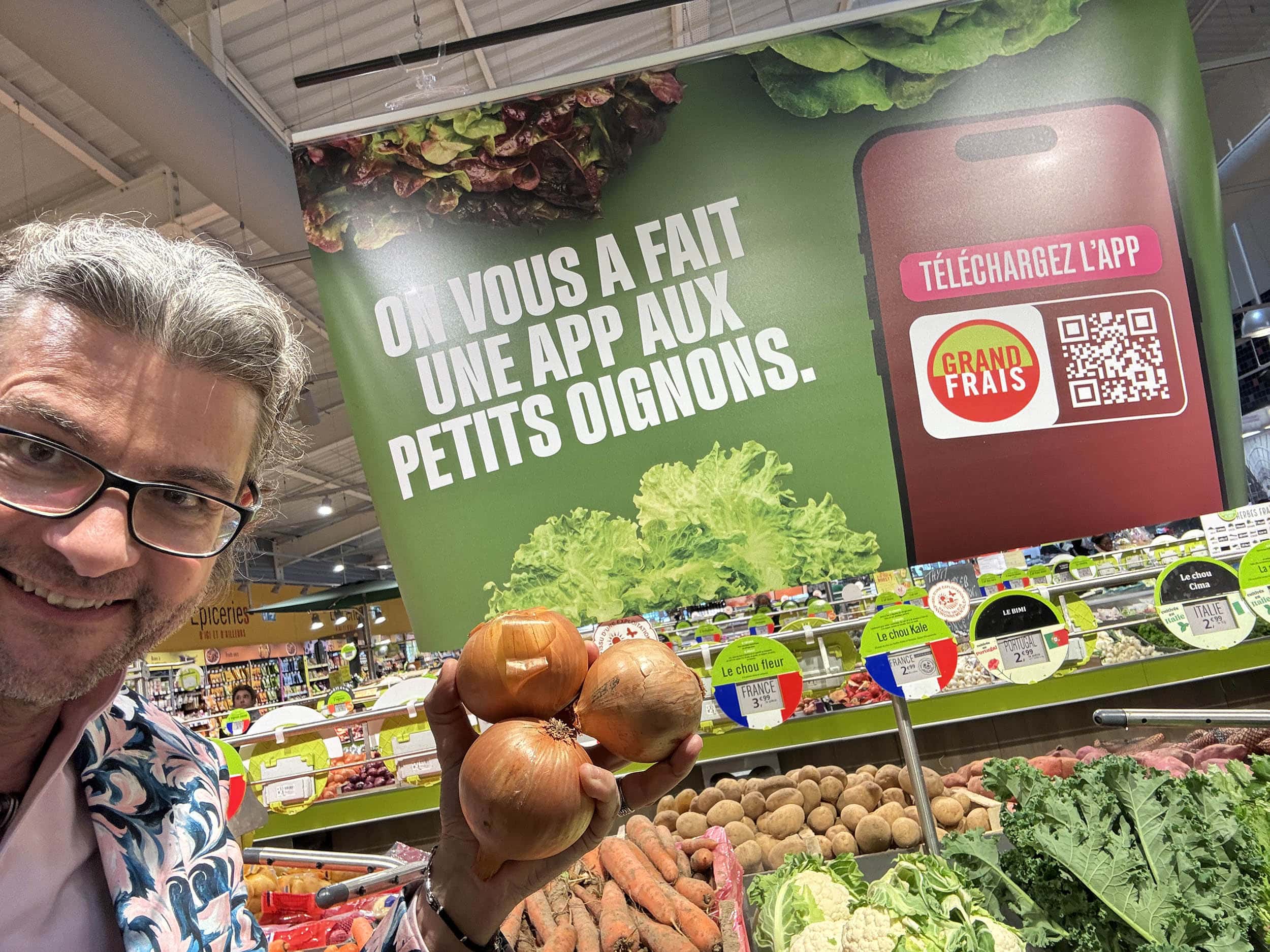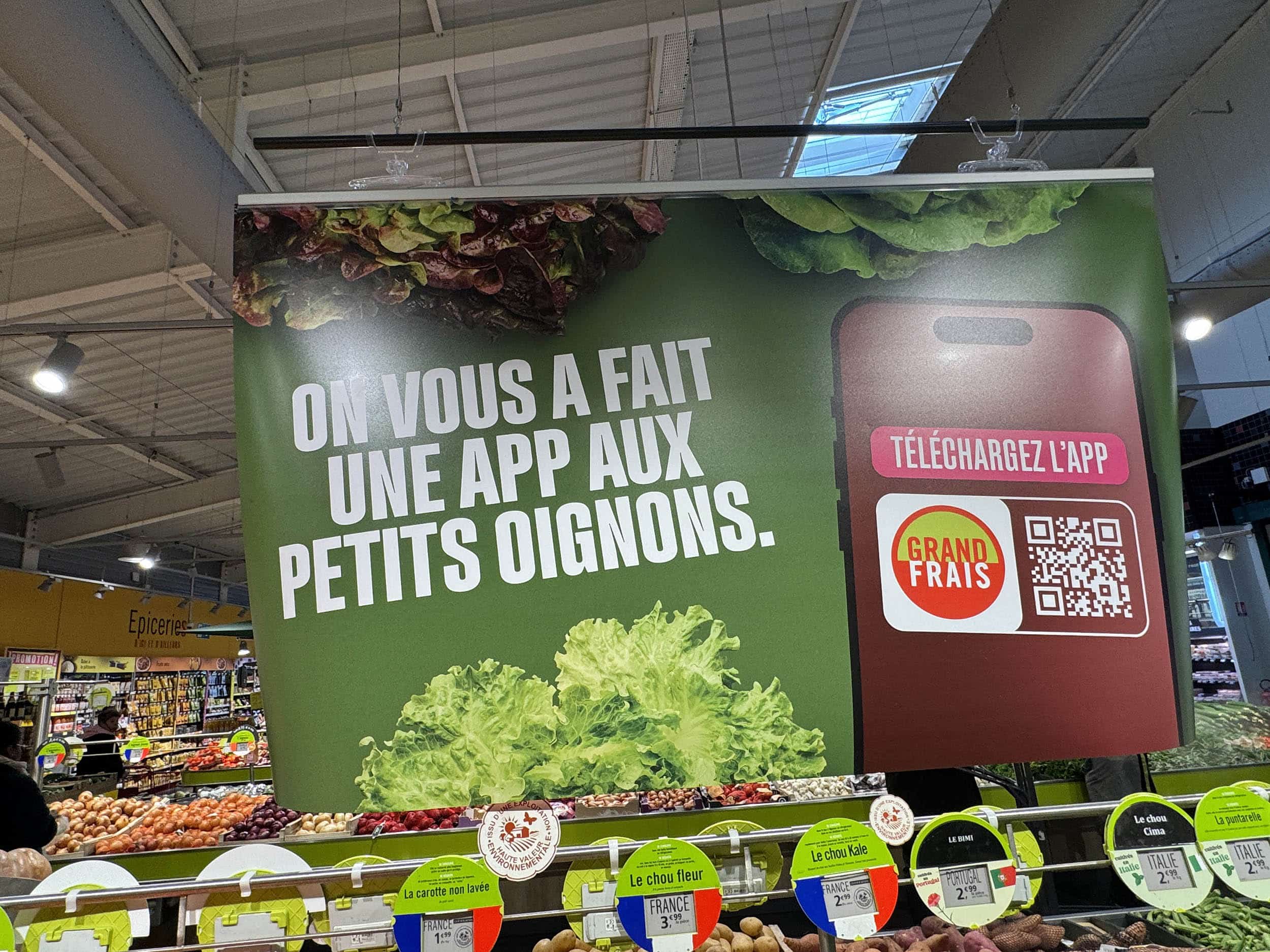 Grand Frais Chilly-Mazarin. « On vous a fait une app aux petits oignons ». Ça serait pas une salade plutôt ? Oh la boulette 🤣.