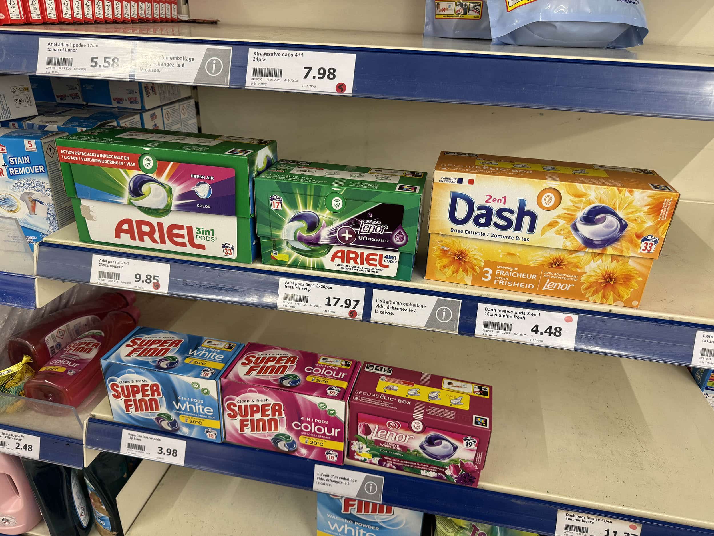 La lessive chez Action. Quelque chose me dit qu’on reprendra pas de sitôt l’enseigne à vendre des pods… Plutôt “proposer” que “vendre” d’ailleurs.