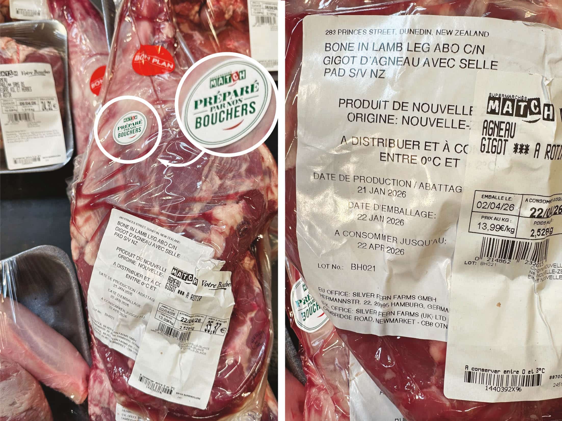Les gigots d’agneau néo-zélandais sont partout. Chez Match, ils sont « préparés par nos bouchers ». Ça consiste en quoi exactement la “préparation” ? A mettre en rayon un produit découpé et emballé à 18 500 km de là ?
