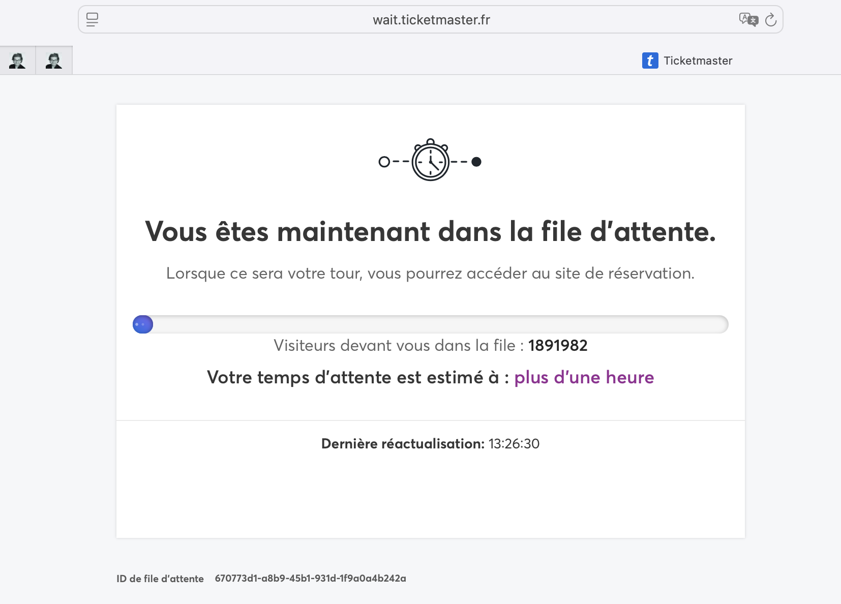 Dans la file d’attente Ticketmaster pour Céline Dion. Plus que 1 891 982 clients devant moi. Ça s’appelle encore vraiment un « file d’attente » ?