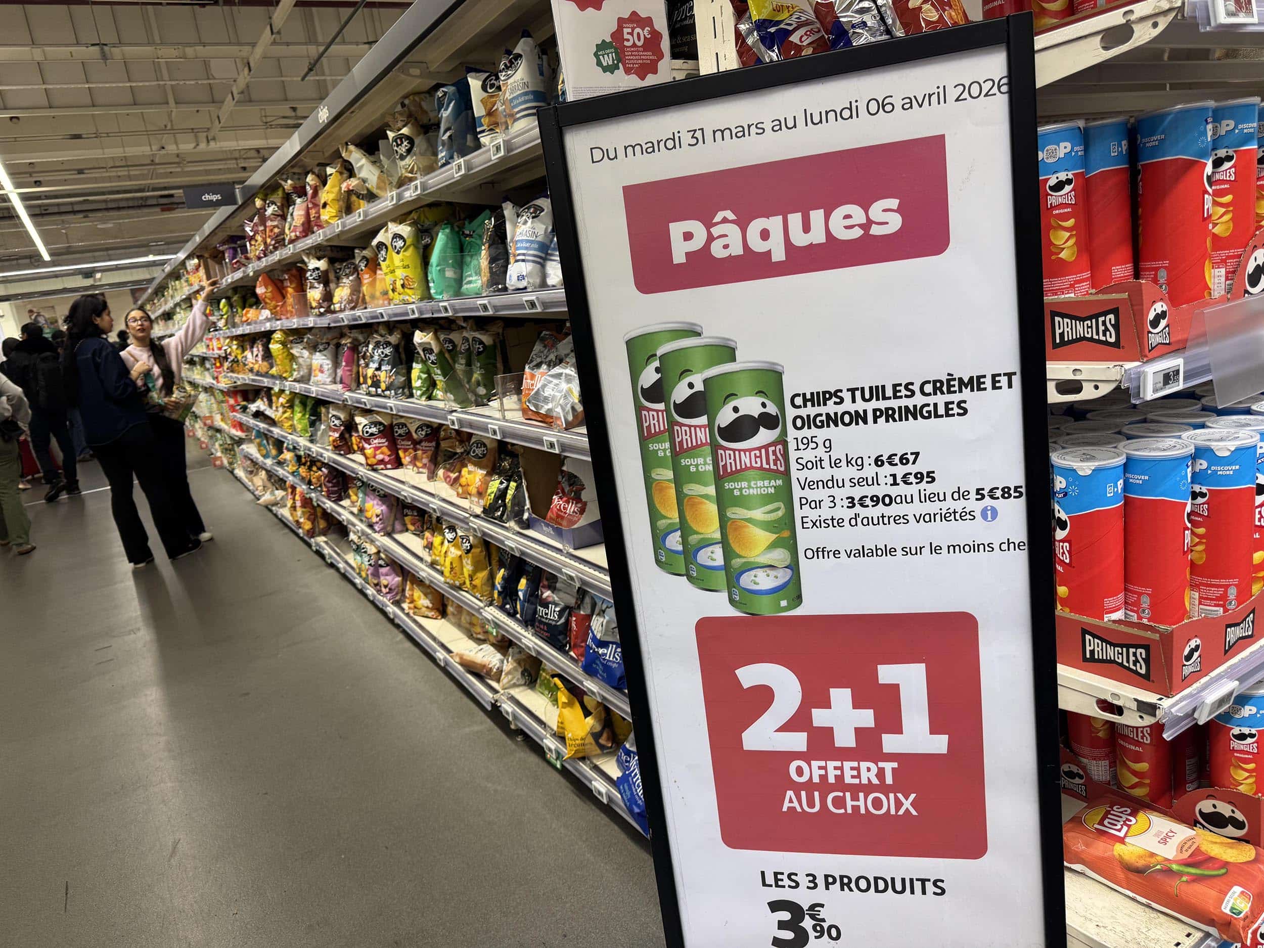 Auchan Les 4 Temps à la Défense (92). Ah !, les Pringles de Pâques. On n’y pense pas assez !
