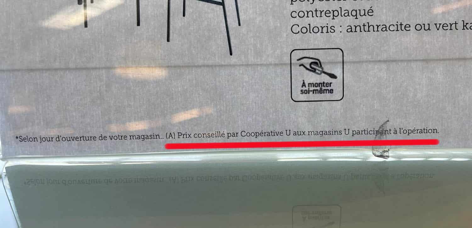 Super U Belz (56). Les U ont un slogan un brin présomptueux : « Commerçants autrement ». Dans les faits, ils sont comme les autres. Quand il s’agit d’habiller un prix, on en invente un autre, « conseillé par la coopérative ». Pour donner l’apparence de l’agressivité. Bref, rien d’un commerce différent.