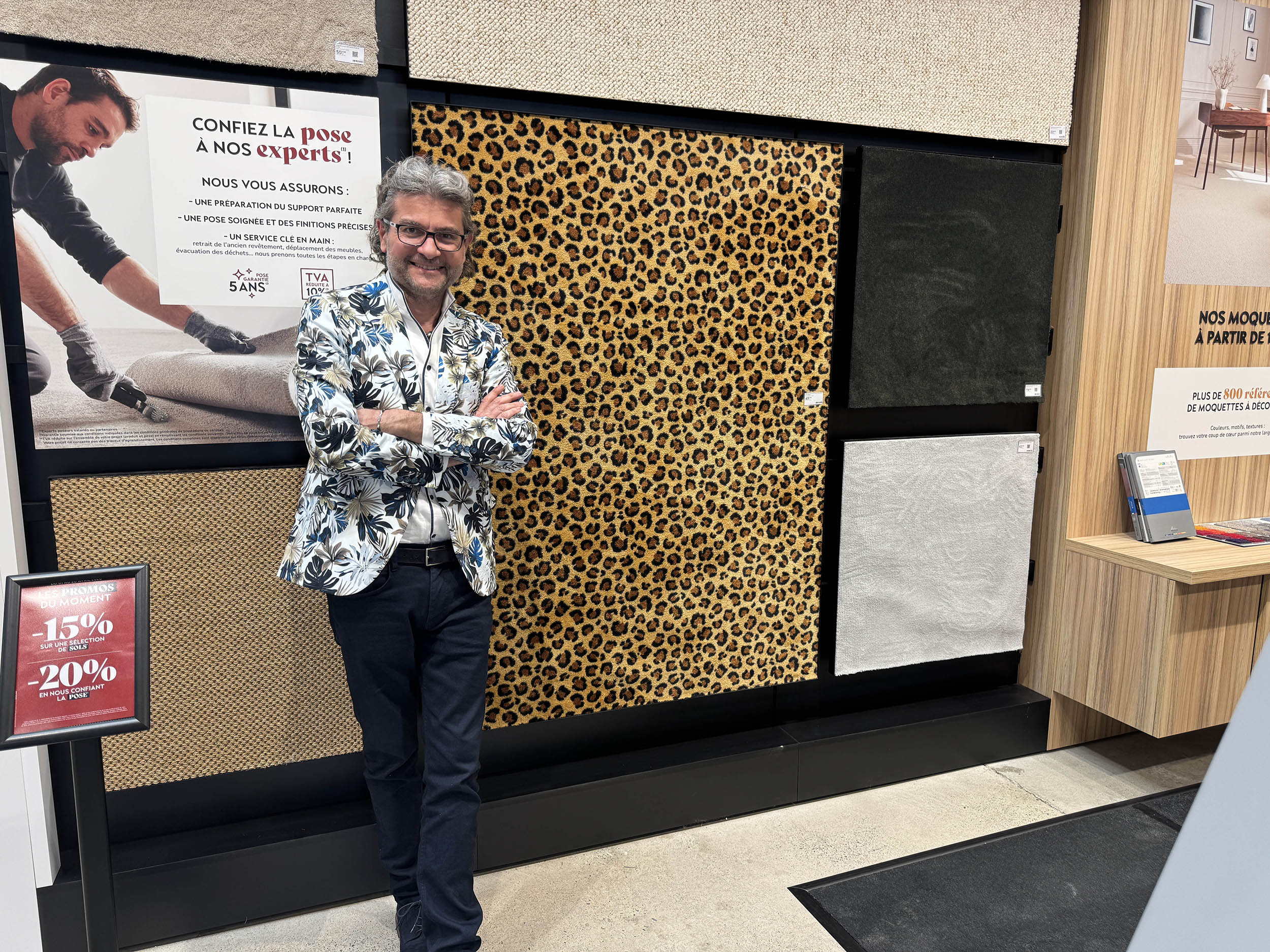 Chez Saint Maclou à Toulouse-Labège (pour le nouveau concept / je vous en reparle la semaine prochaine). Ma veste pourrait faire un motif de moquette. La moquette un motif de veste. Je ne sais si c’est (vraiment) le signe du bon goût.