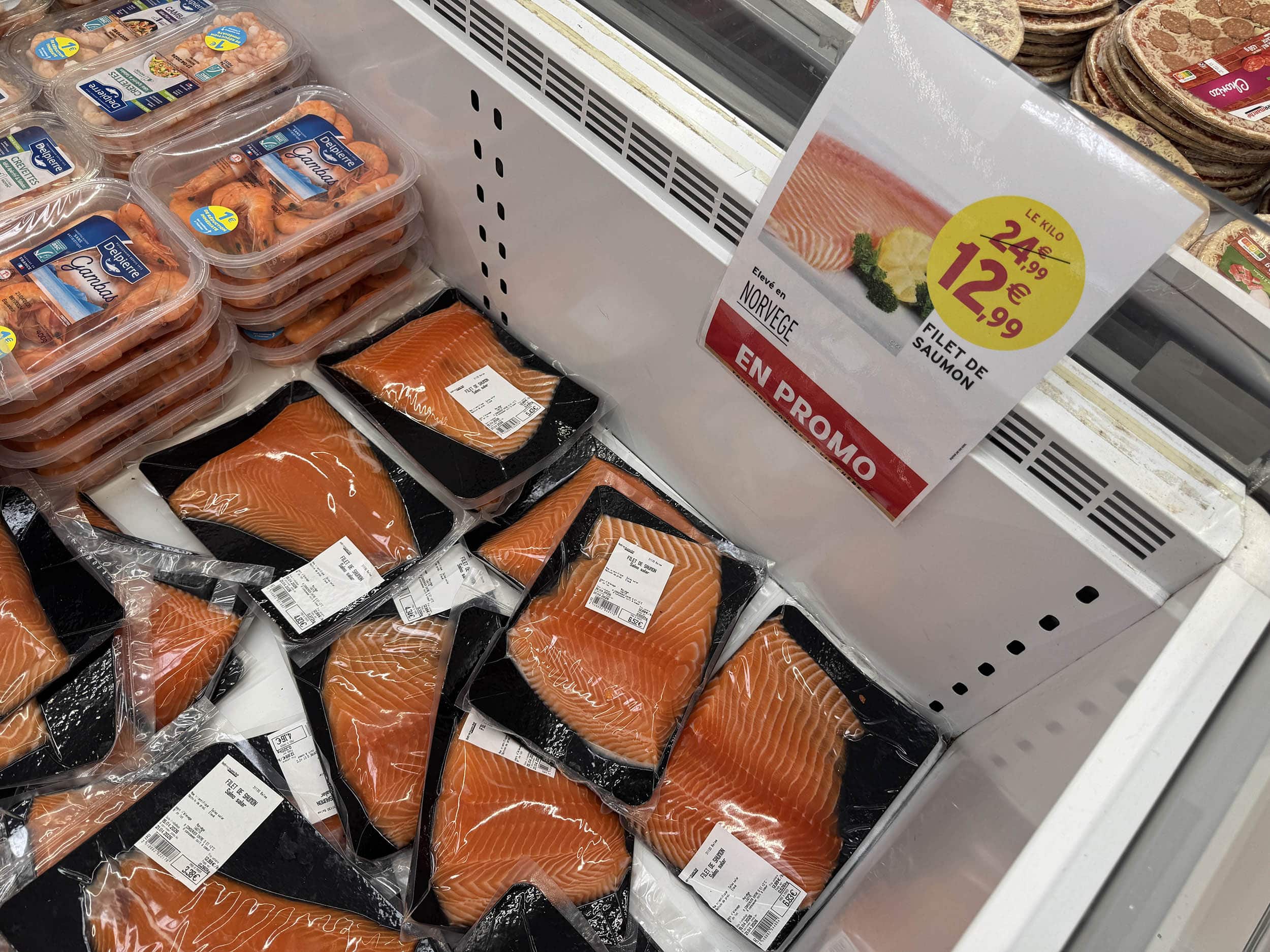 Intermarché Toulouse. 50 % (ou presque) sur le saumon. Police de la promo bonjour !