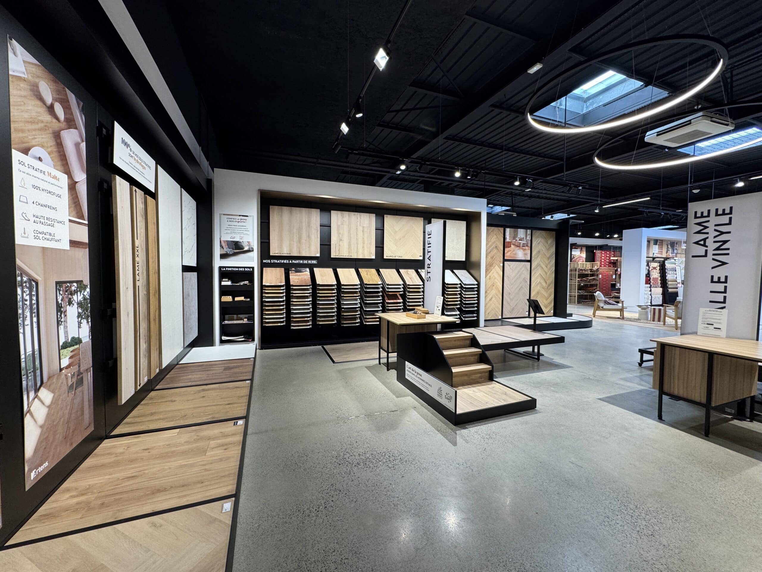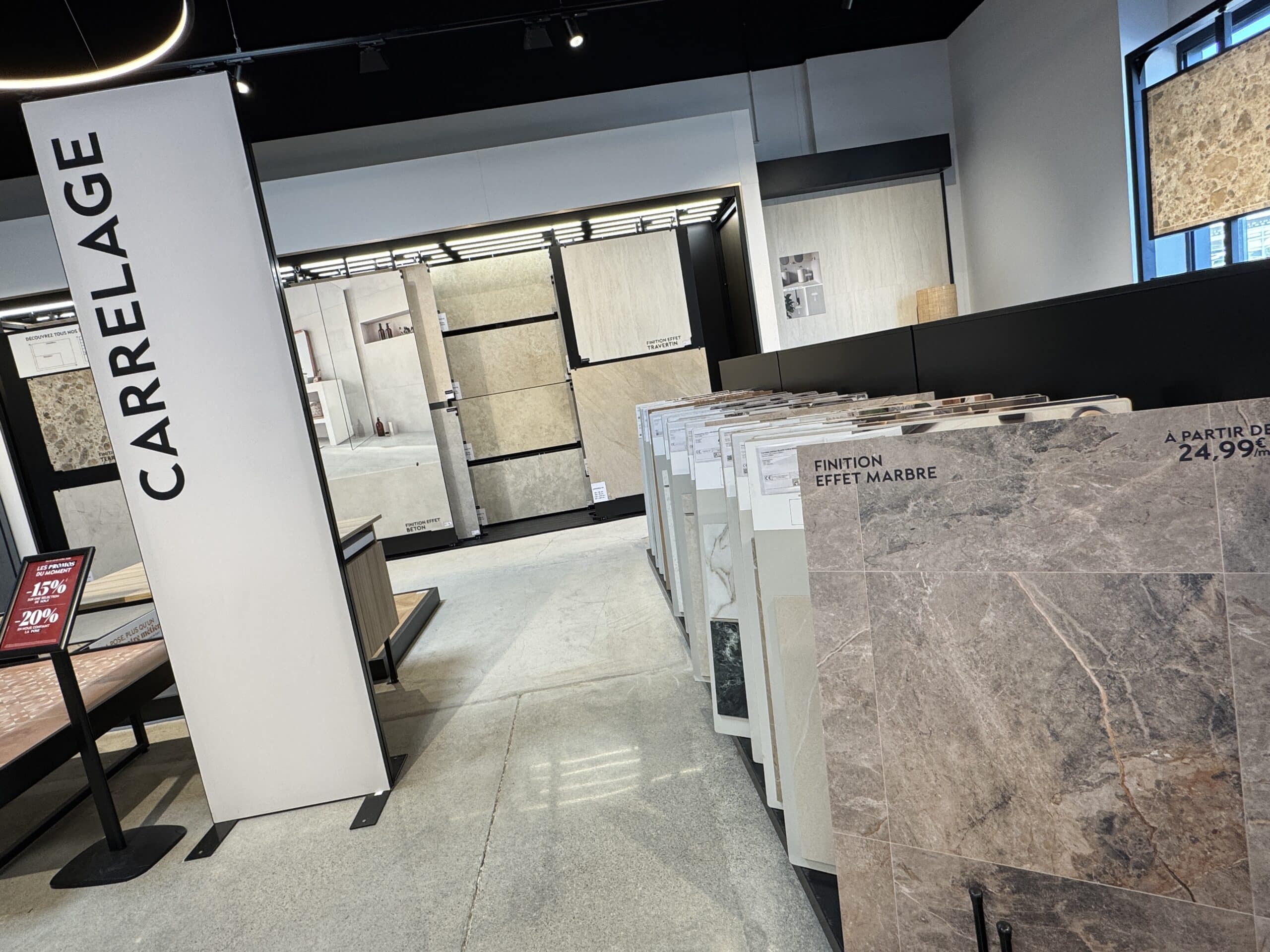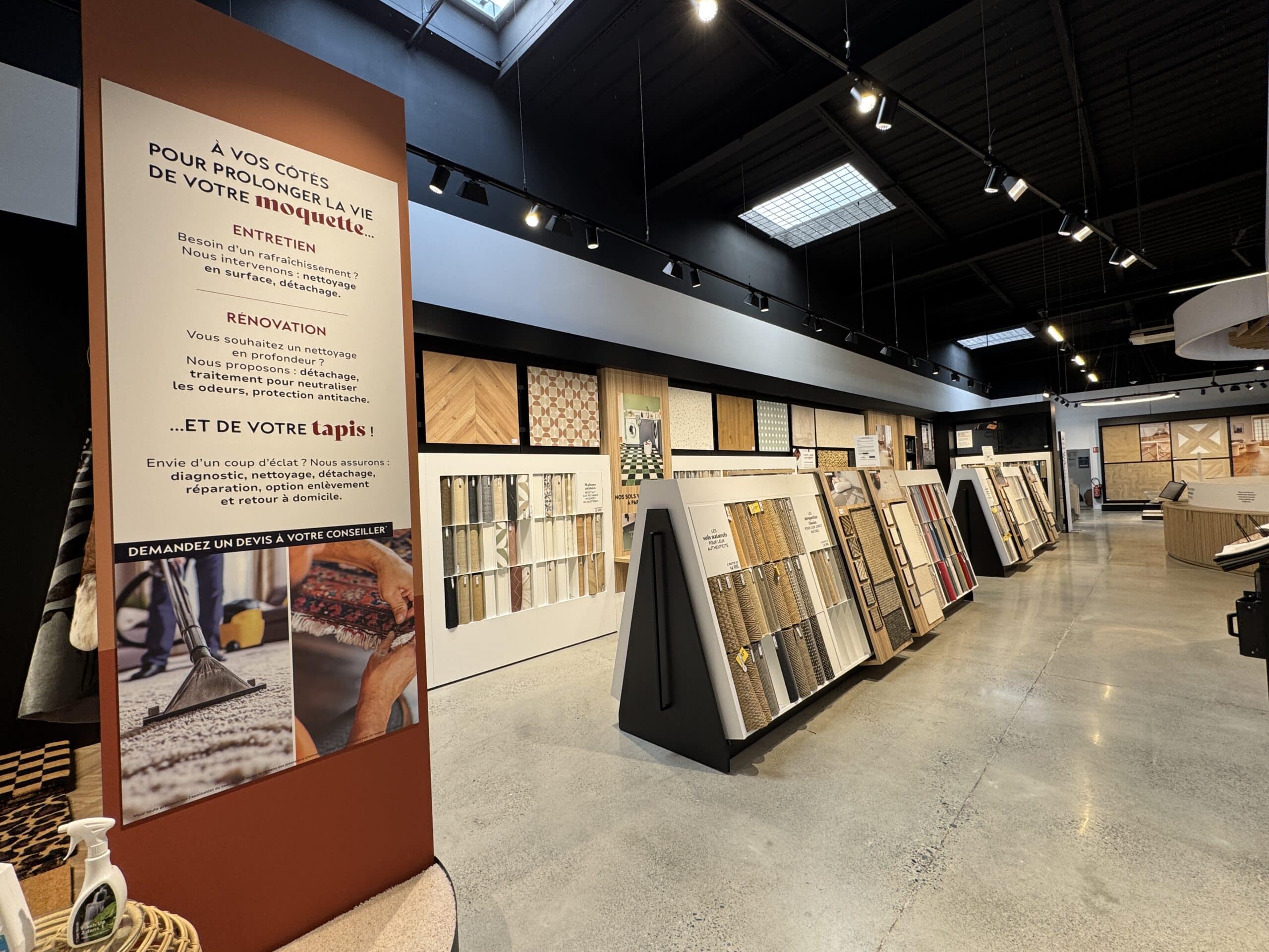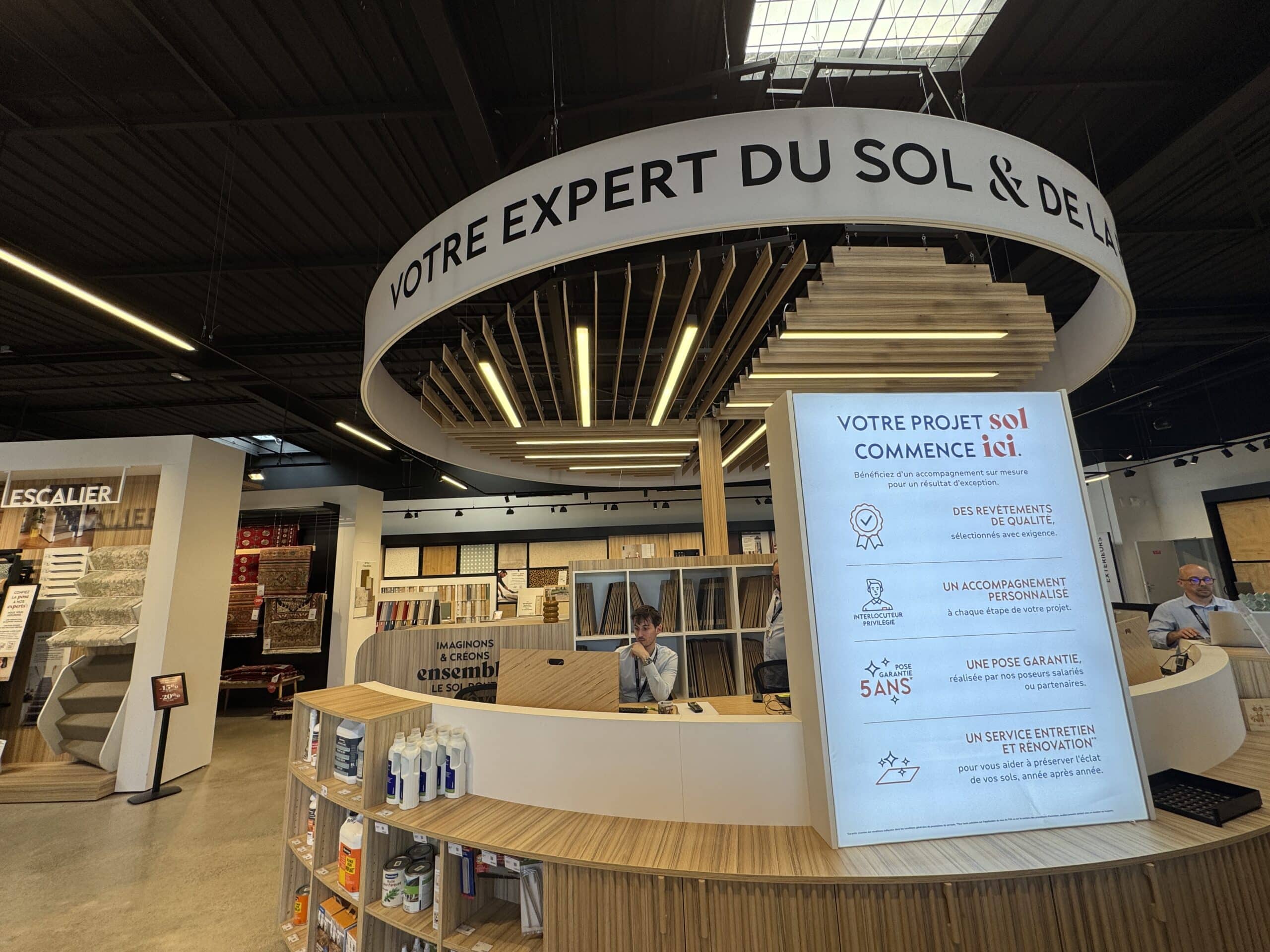 En parallèle, St Maclou en a profité pour revoir son expérience-client et a dédié son magasin de Toulouse-Labège à une vocation de “proto”. Tous les magasins n’en seront pas une copie (la faute aux capex), mais ils devront s’en inspirer. D’où l’intérêt du voyage (que j’ai fait… “évidemment”). Parmi les changements (outre la disparition du papier peint et des tissus) : une véritable banque d’accueil qui structure le centre du magasin, incluant les zones projet pour recevoir les clients. Plus frappant encore : la dose de modernité de l’ensemble, notamment apportée par la multiplication des types de présentation au sein d’univers clairement démarqués (parquet, stratifié, tapis, moquette, carrelage, etc.).La hiérarchisation de l’offre est mieux travaillée, ce qui permet de faire ressortir ce que St Maclou considère comme des aspérités dans chaque zone. Un point d’amélioration néanmoins : la “tension commerciale” qu’apporte classiquement l’expression du prix. Timide, beaucoup trop timide. Comme s’il fallait cacher le prix… Alors que, par principe, un spécialiste (forcément suspect d’être cher) doit rassurer sur ce sujet ! Reste que le démarrage est jugé satisfaisant en interne. Le NPS s’est envolé (90), conséquence normale de la mise à niveau des actifs. Et la vélocité du magasin vs son réseau (l’écart d’évolution de CA) d’environ + 15 %.