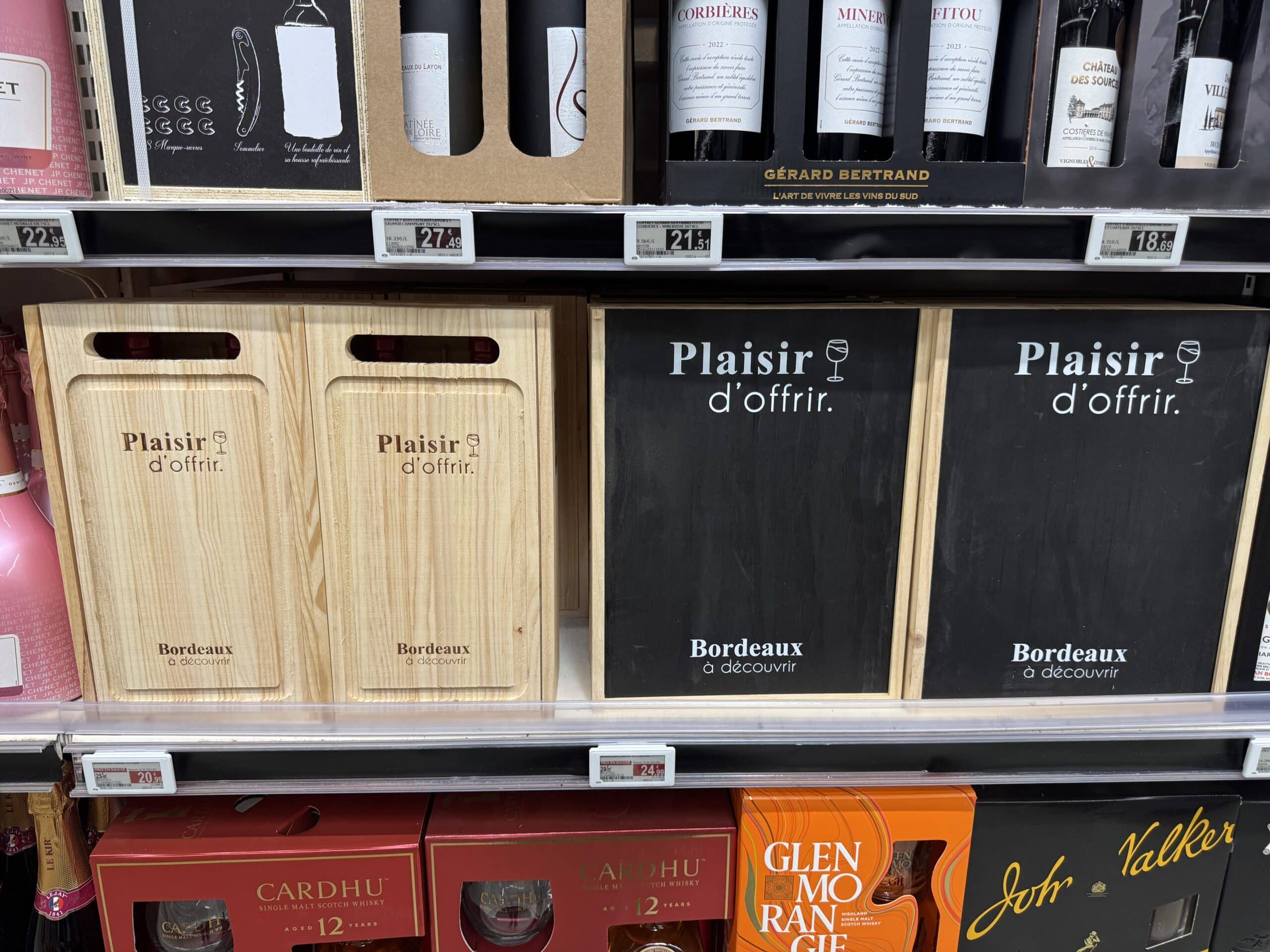 Rayon vins Auchan. On achète en aveugle ? Coffret surprise.