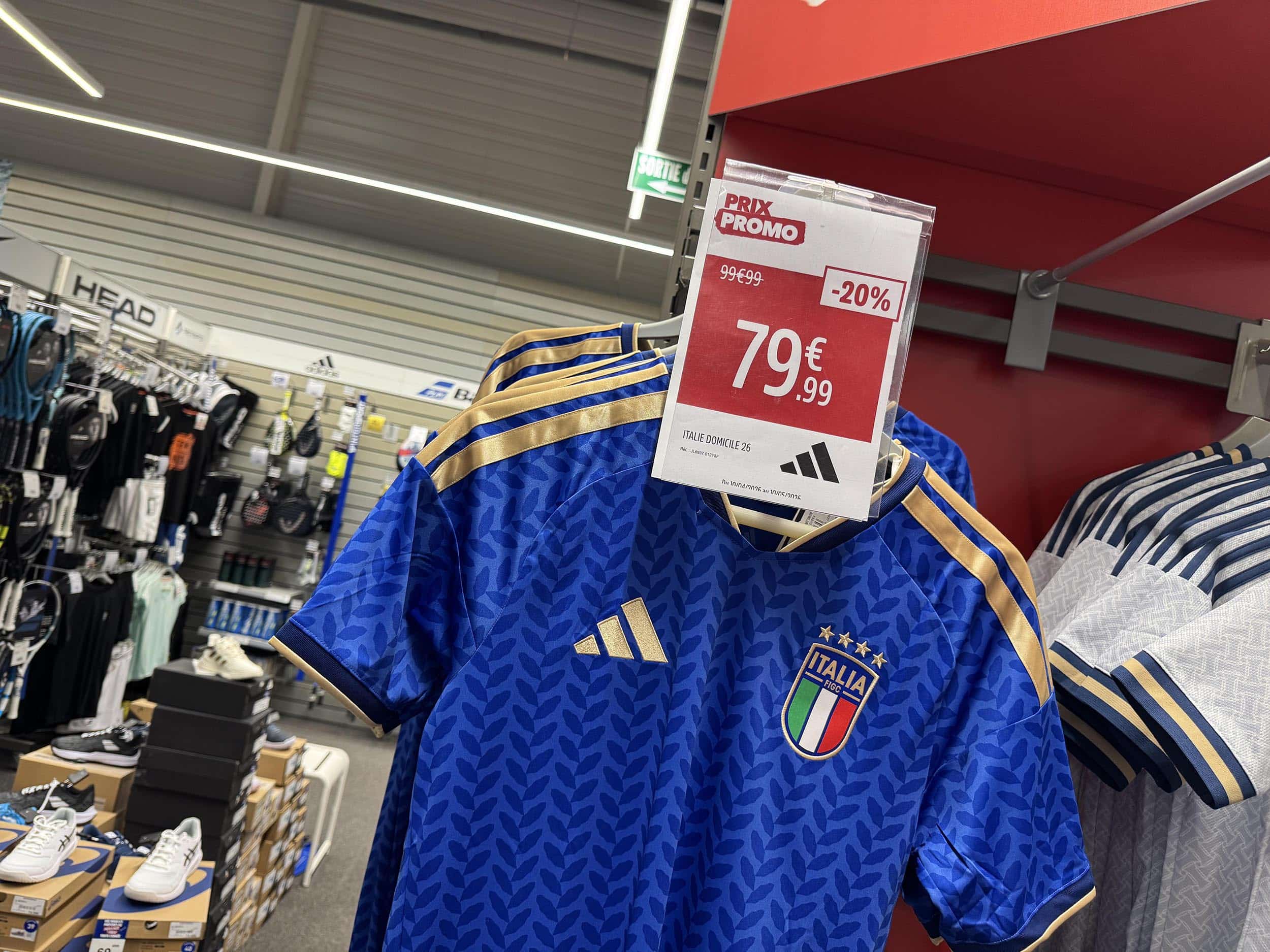 Promo sur les maillots. Vu les performances des Italiens, j’ai bien peur que même à – 20 %, ça reste cher.