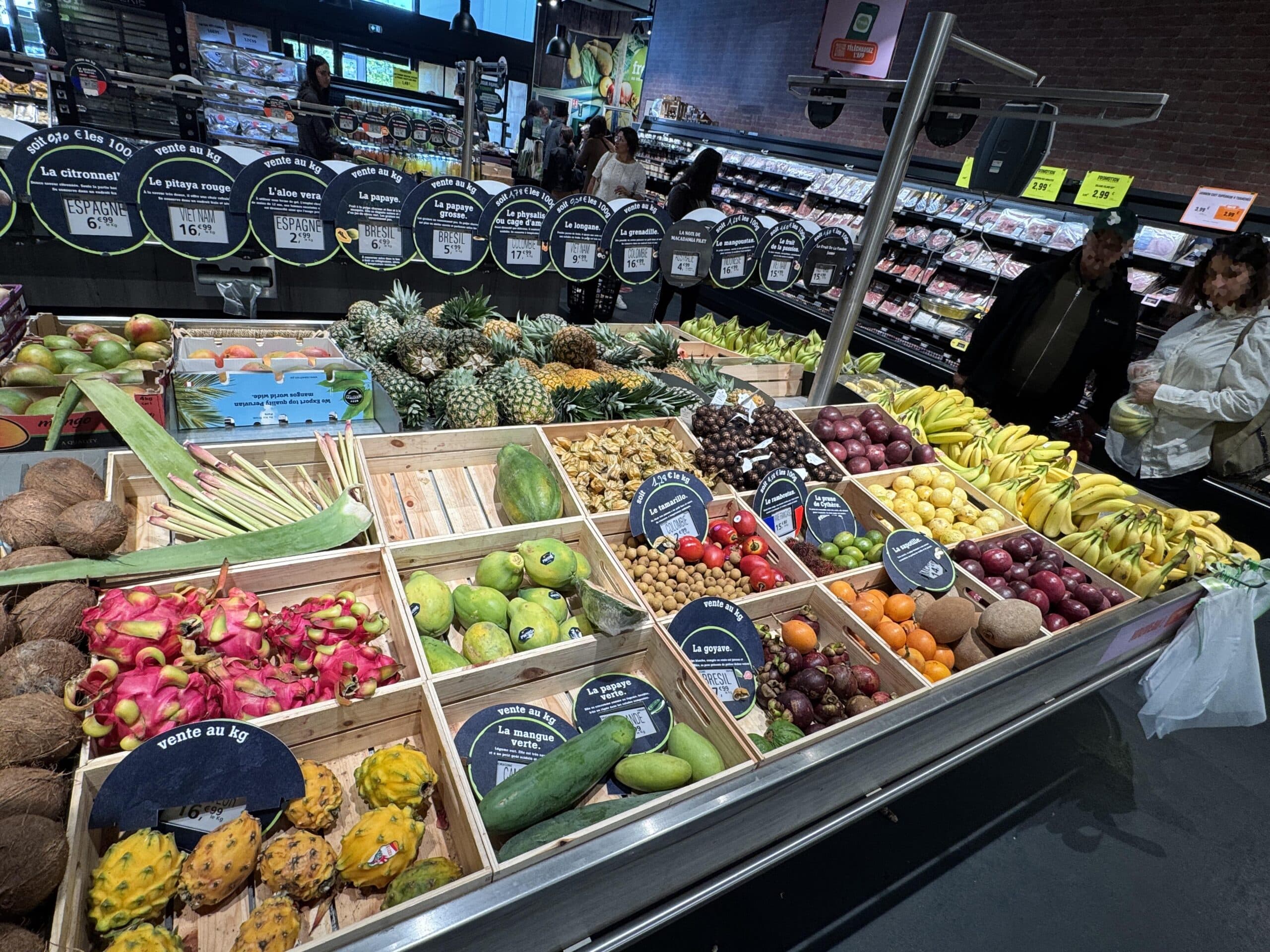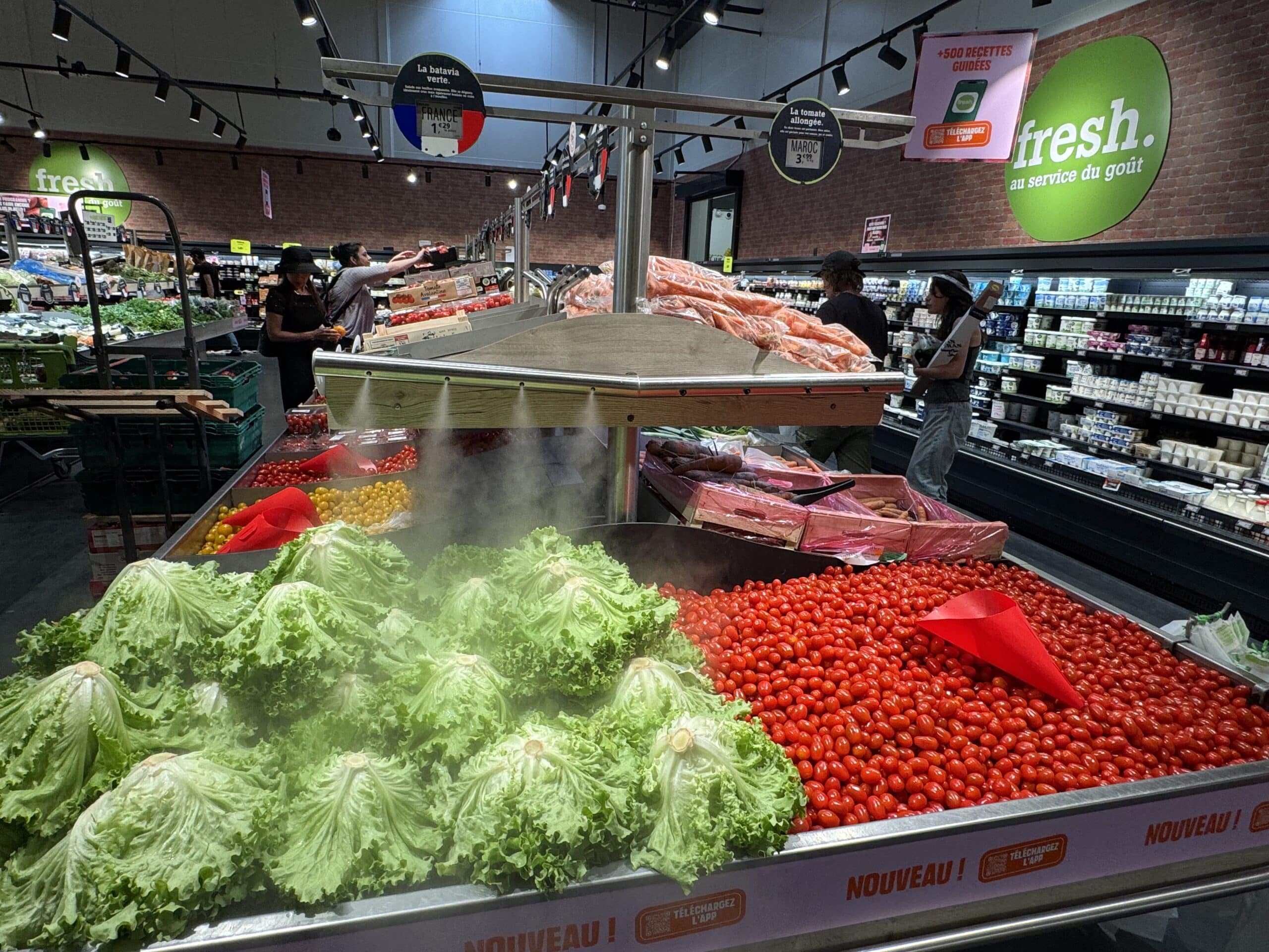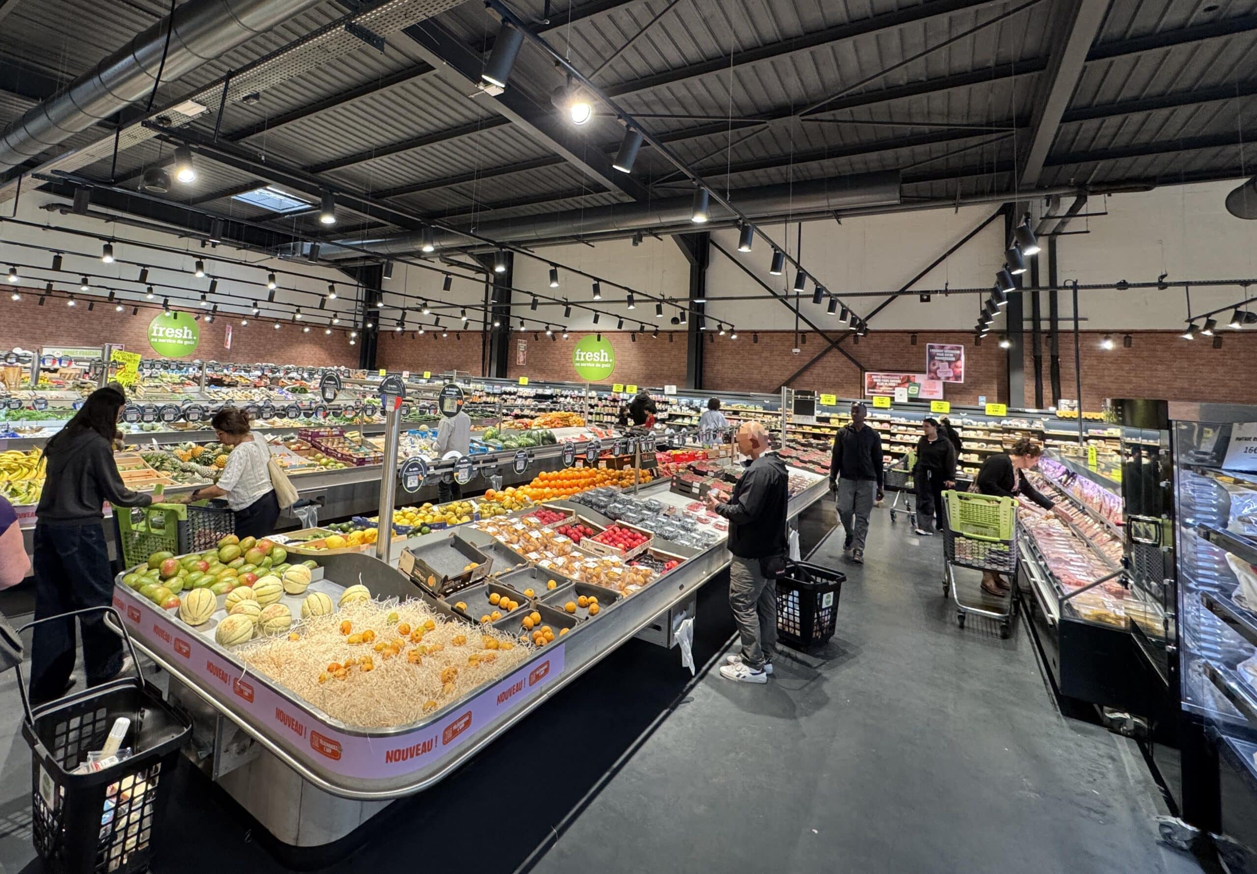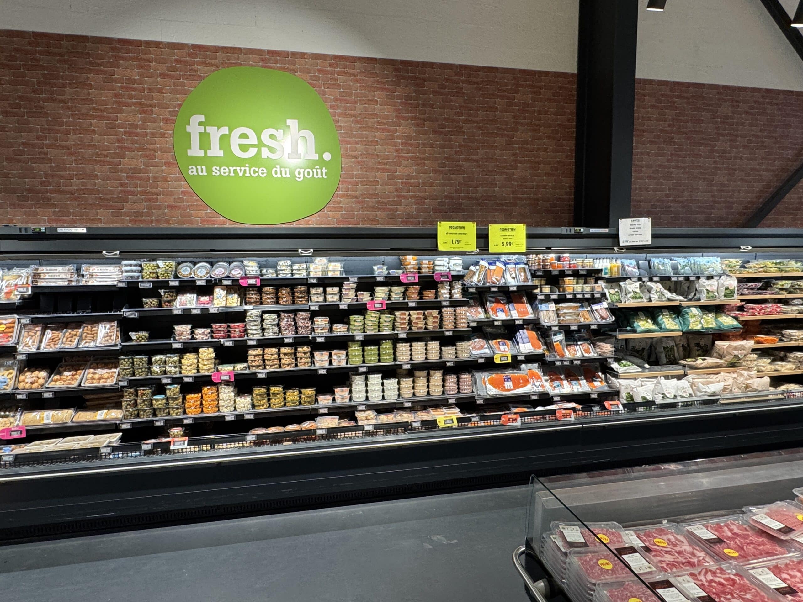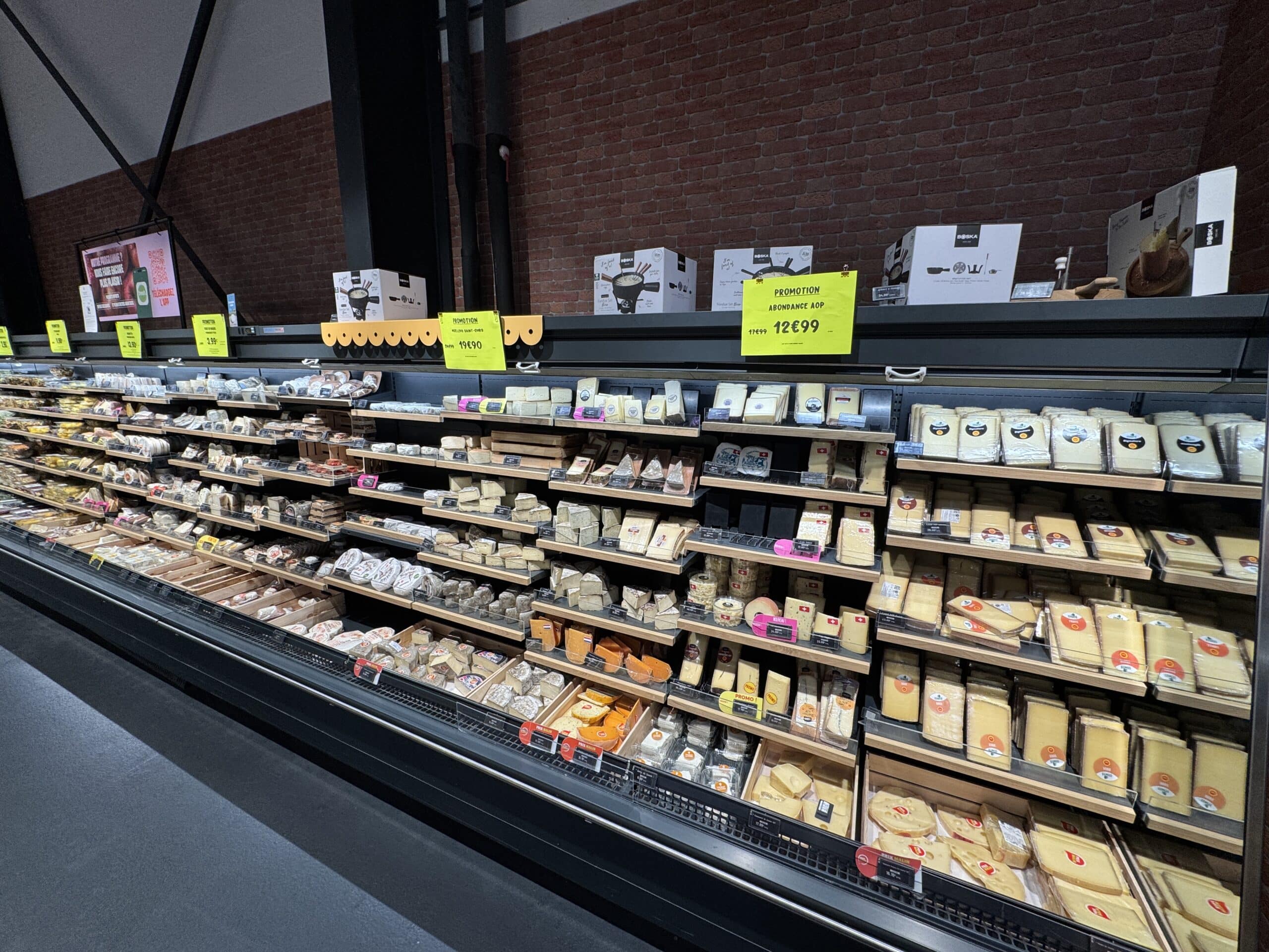 Fresh est le format de mini-multifrais de Prosol (par ailleurs opérateur de Grand Frais). Lorsque Grand Frais jauge 1 000 m2, Fresh est deux fois plus petit : 500 m2. Mais un modèle commercial manifestement efficace… La plus petite unité génère 6 millions (soit de plus de 10 K€/m2/an), la plus importante 18 millions. Et autant dire que 18 millions sur 500 m2, ça méritait le détour. Que j’ai donc fait à Annemasse, à quelques kilomètres de la Suisse, ceci expliquant aussi cela. Le panier est dopé par le pouvoir d’achat des frontaliers. Et le magasin dur à tenir pour la grosse trentaine de collaborateurs. Même si le point de vente a adopté quelques meubles habituellement dévolus à Grand Frais pour accroître la capacité linéaire, le flux est tel que le réassort quasi permanent !